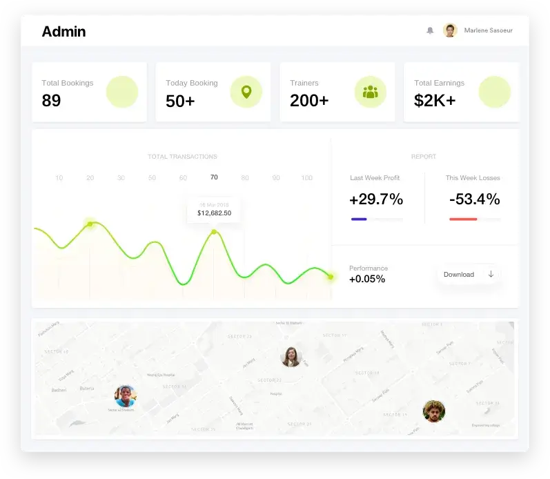 professionals and end customers on your app making it a revolutionary benchmark for the fitness industry.
